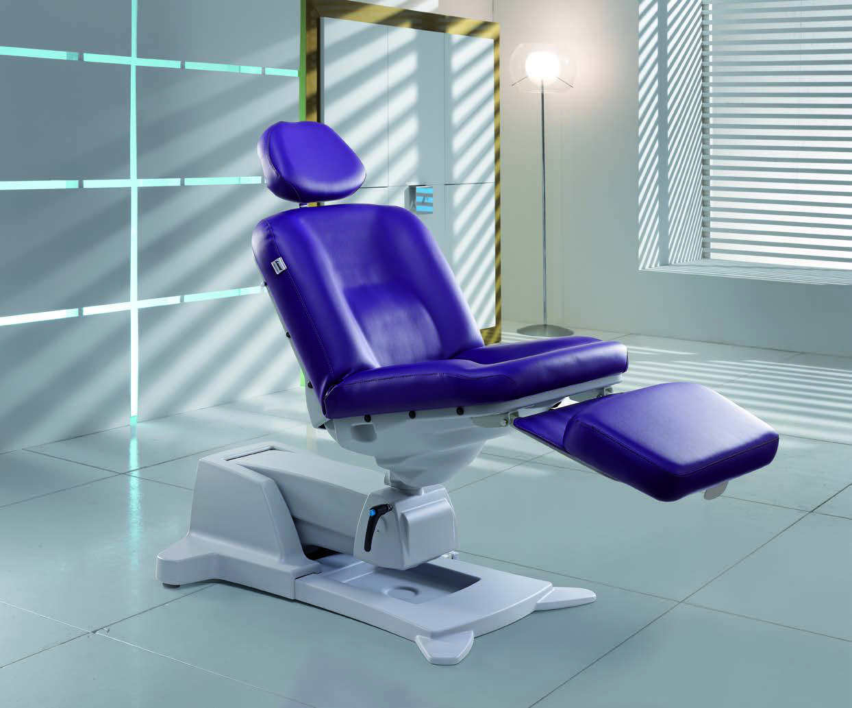 Кресло имеет четыре электродвигателя, при помощи которых осуществляется регулировка положения оборудования. Все манипуляции выполняются при помощи кнопочного пульта или педали. Производителем предусмотрена функция возврата в начальное положение. Благодаря тому, что матрас не имеет швов, существенно упрощается его уборка. Модель также оснащена регулируемым и съемным подголовником, что обеспечивает комфорт для клиента и облегчает доступ для специалиста.