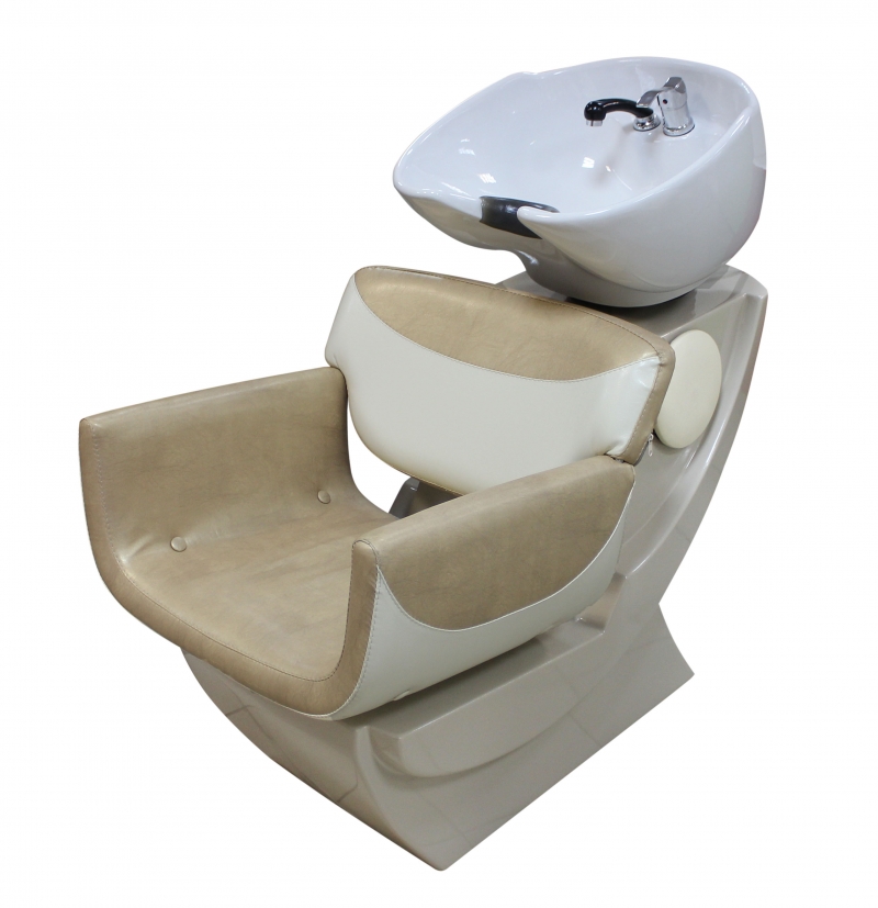 У изголовья кресла располагается раковина, угол наклона которой можно регулировать так, как удобно парикмахеру и клиенту. Она изготовлена из керамики. Она выполнена в форме классической ракушки, которая имеет выемку для головы клиента. Это очень удобная функция, которая позволяет мыть голову человеку и не переживать, что вокруг него будет много брызг воды.