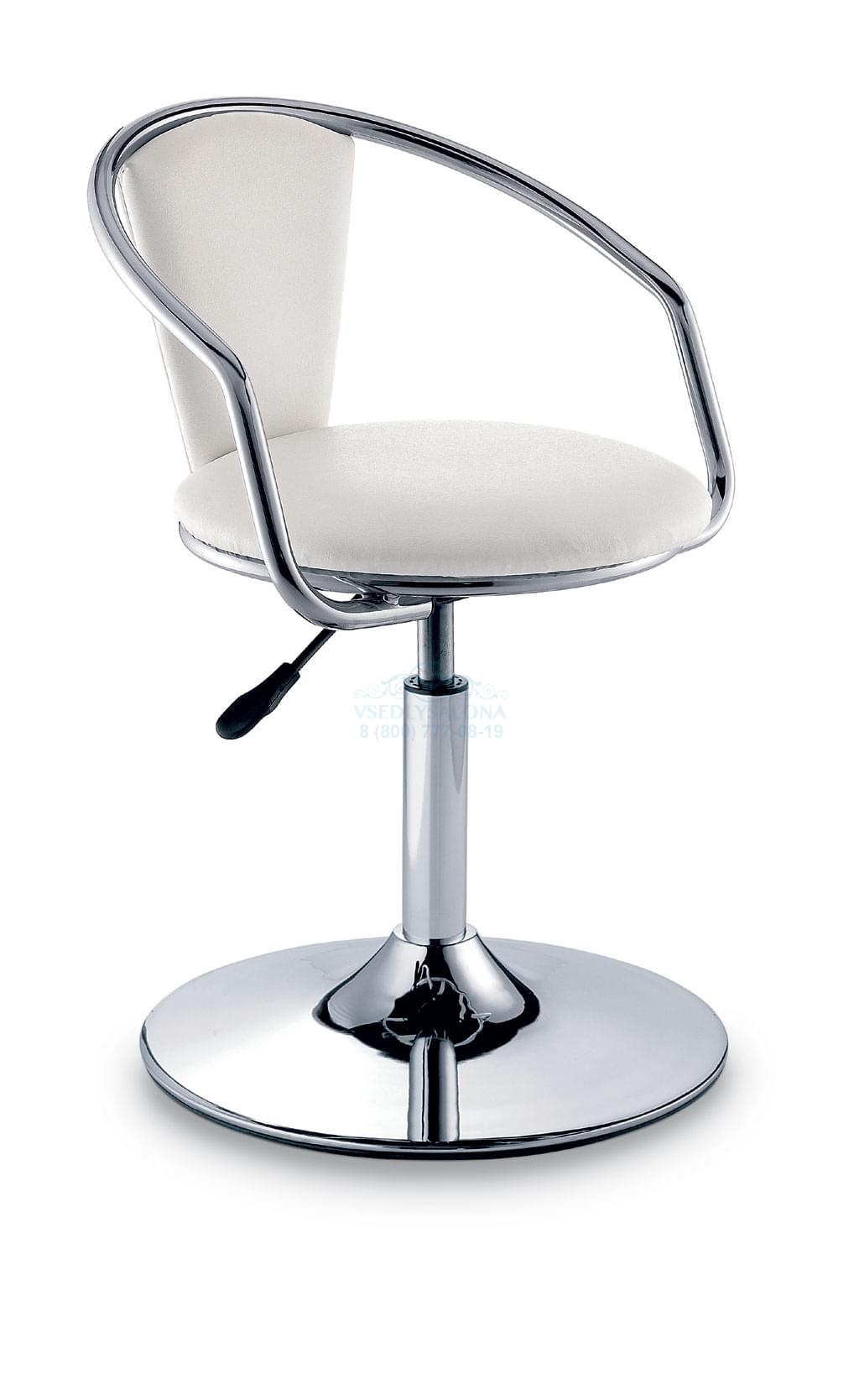 Стул на пневматике и диске. Каркас стула изготовлен из металла, спинка и сиденье с толстой и мягкой обивкой обтянутой кожзамом. Варианты цвета: белый, черный. Высота стула: мин 43 - макс 58 см.